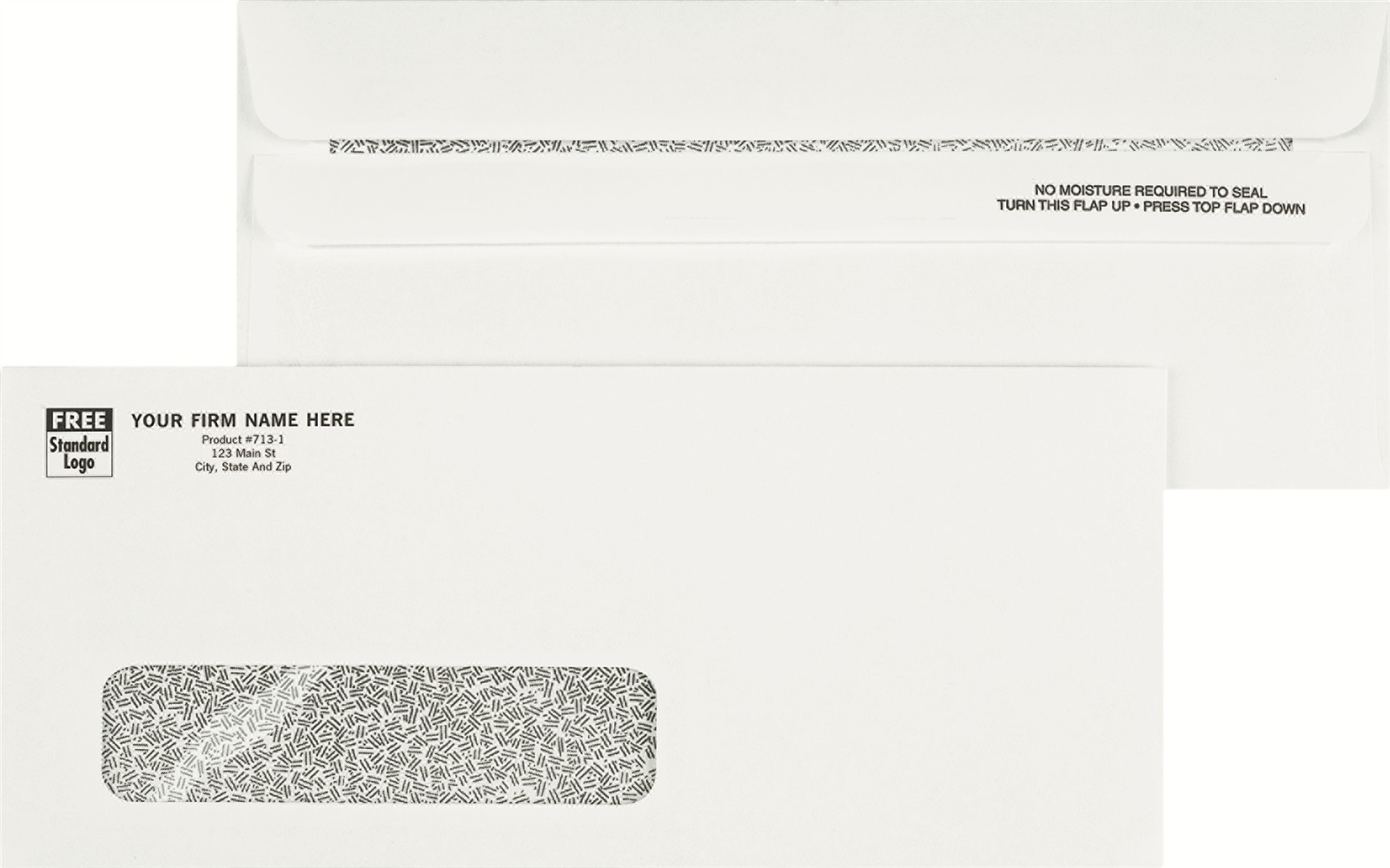 Looking for a #10 security single window self-seal imprinted envelope?this single window self-seal envelope is the perfect choice. It will save you lots of time since it has all your company information printed on the envelope and has a self seal flap that seals securely. Add your company logo at no additional cost ! Envelope size is 9 1/2 x 4 1/8 Window size 4 1/2 x 1 1/8 Window placement 7/8 from left - 2 1/2 from top. DF713