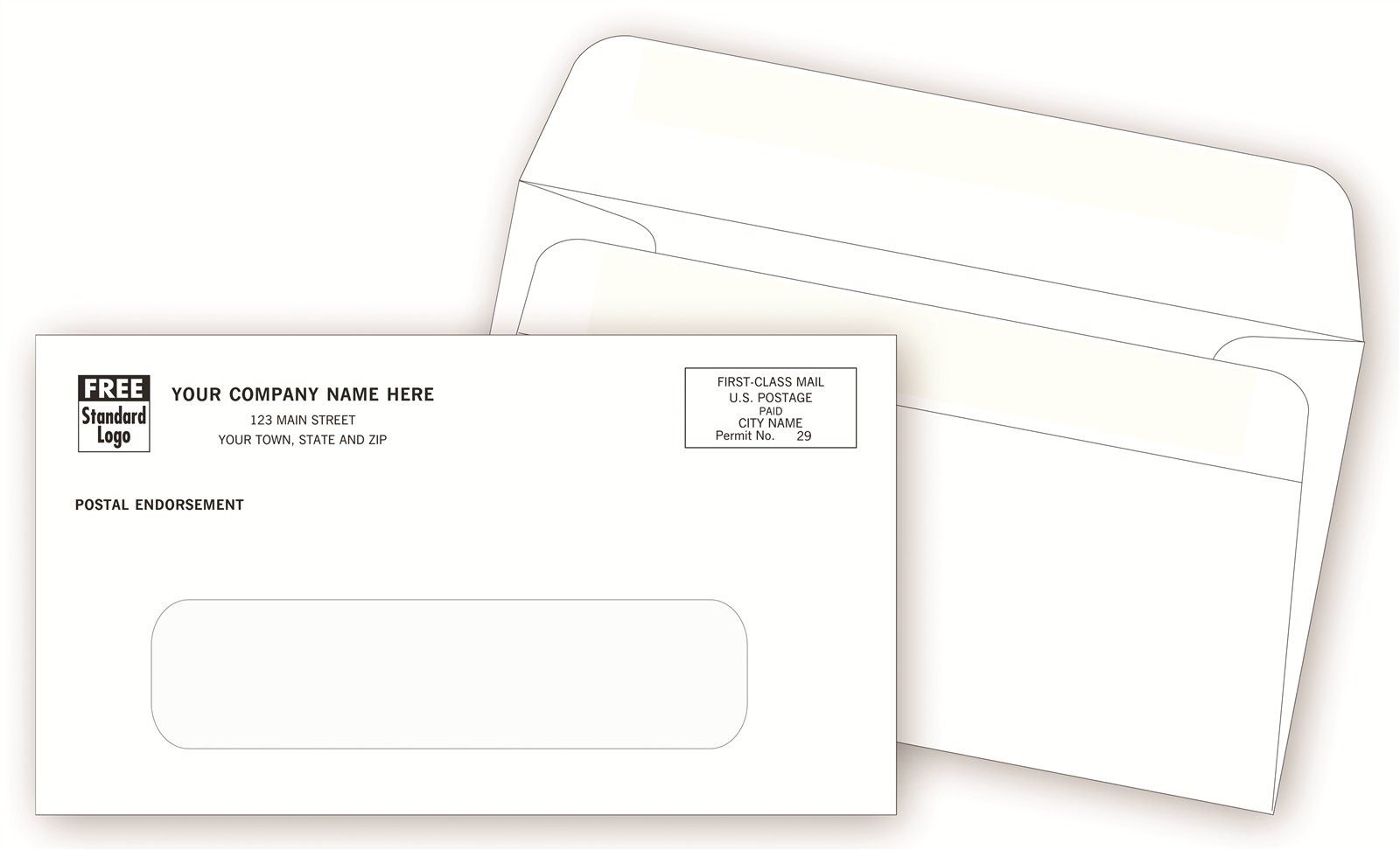 Save even more time with this single window #6 self seal envelope. Each envelopes comes imprinted with your return address and you have the option to add you company logo at no additional fee!. This single window envelope has a self seal flap that seals quickly and cleanly. Envelope size 6 1/2 x 3 5/8 Window size 4 1/2 x 1 1/4 Window placement 7/8 from left and 2 inches from top.